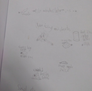 Today we went on a hike and drew sketches of things we saw, i drew ants that i fed. They seemed to really like cupcake icing and could carry chip crumbs three times their size by themselves, but it took about twenty ants to move a bit of salami. They were quiet and didn't smell but they released lots of pheromones because within minutes it went from 5 ants to 100.